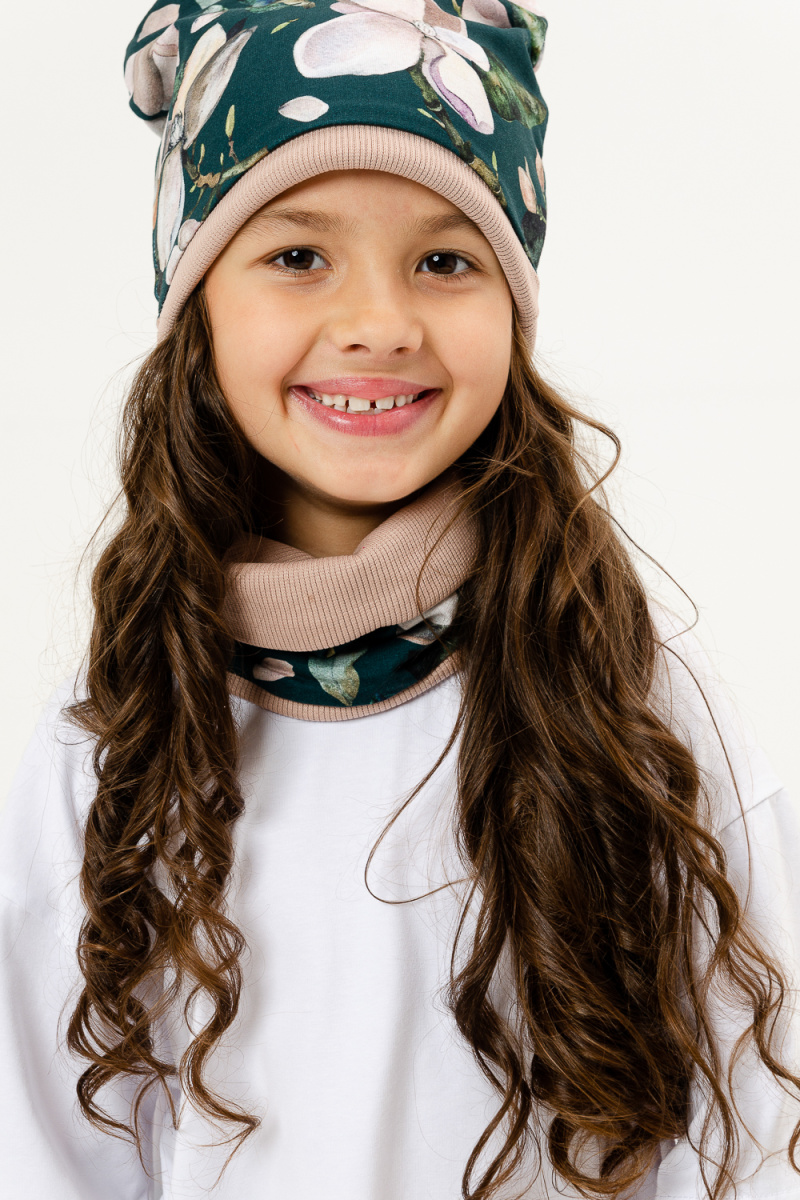 Комплект для девочек: шапка + шарф-снуд в детской в стильной расцветке.