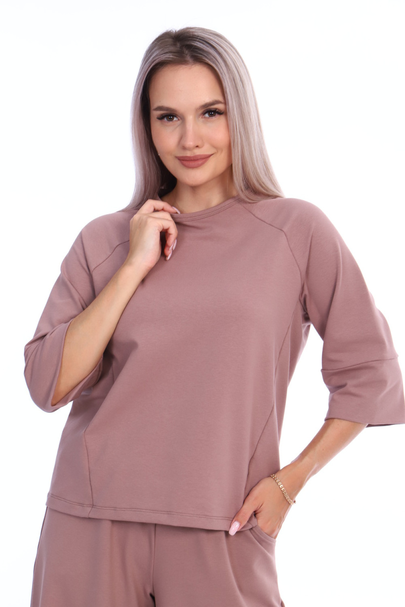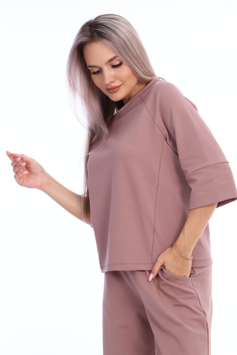 Этот уютный женский комплект идеально подходит для домашнего отдыха и непринужденных выходов. Изготовленный из мягкого и комфортного футера, он обеспечивает непревзойденный комфорт и свободу движений. Брюки палаццо обладают широким покроем и эластичным поясом, который идеально облегает талию.Кофта с рукавом три четверти позволяет чувствовать себя комфортно в любой ситуации.
